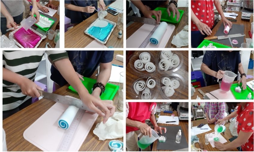 | 9/7嘉義市社區大學張綺玲老師手工皂DIY~C班作品分享~MP創意香氛捲捲皂,童趣棒棒糖皂,印加果卸妝凝露DIY