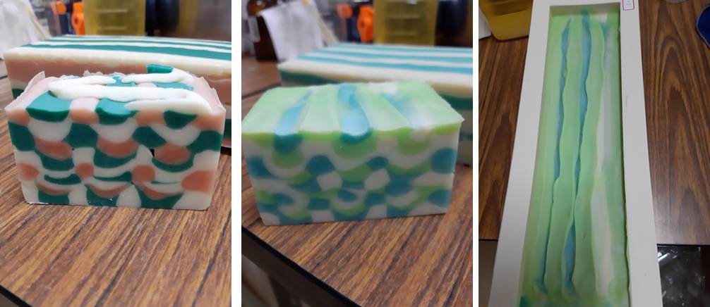 | 嘉義市社區大學張綺玲老師手工皂DIY~A班作品分享~魚鱗皂,防蚊凝膠DIY,上周愛心渲染皂作品(10/14)